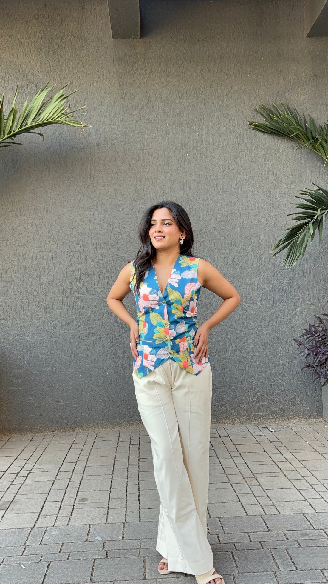 Step into color and confidence with this tropical-inspired vest set. Featuring a tailored fit and...