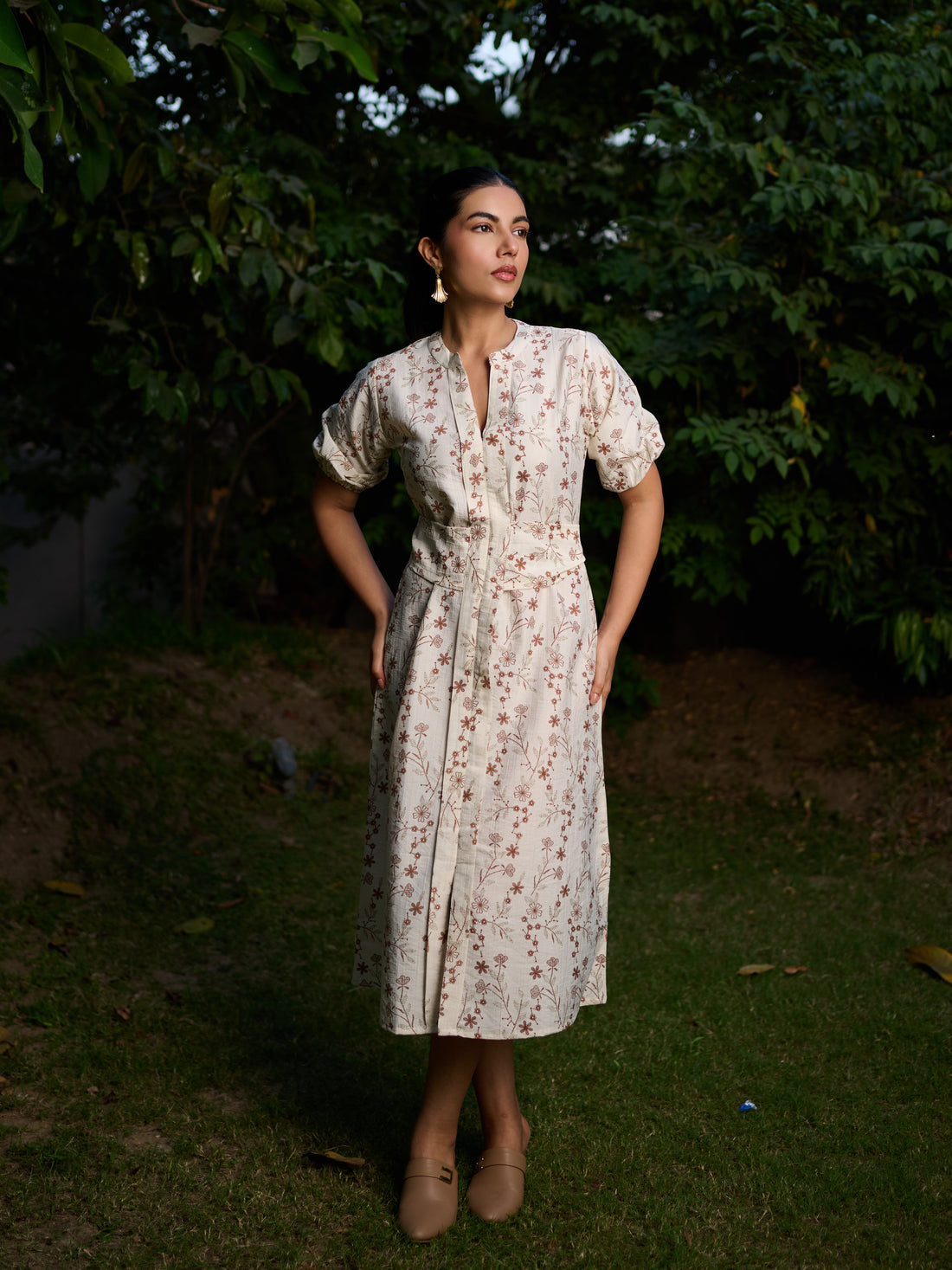 The Perspective Dress in Cream with Rust Floral Print